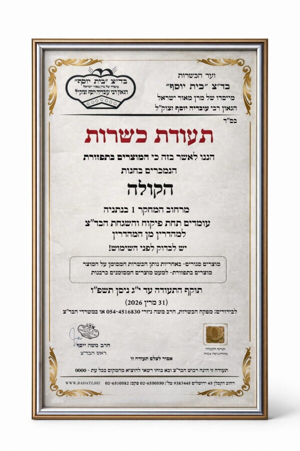החנויות והאתר כשרים לפסח, לכן מוצרים לא כשרים לפסח לא יתווספו להזמנה ויורדו אוטומטית.